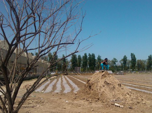 太阳村的一个孩子在农场外面的土丘上吃午饭. 2012-05-05